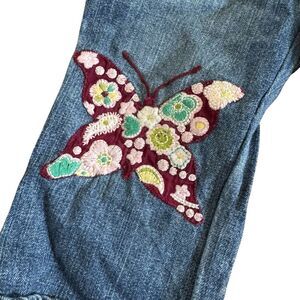 Baby Gap Girls Denim Jeans Blue Embroidered Butterfly Floral Bootcut 12-18M Boho