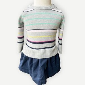 Baby Gap Toddler Girls Kids Long Sleeve Button Shoulder Striped Knit Sweater Tunic Dress.