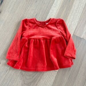 Baby Gap Girls Red Velour Peplum Crew Neck Long Sleeve Top Size 12M