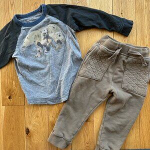 Baby Gap Kids Raglan Polar Bear Tshirt 2T Art Class Tan Joggers Boys Outfit