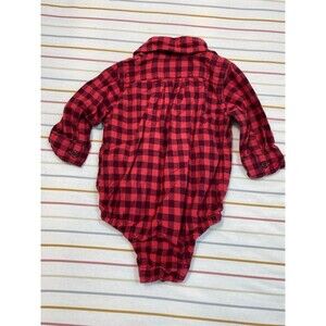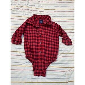 Baby Gap Red Buffalo Plaid Cotton Button-Up Bodysuit – Size 3–6M