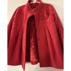 Baby Gap Red-Pink/Cerise Color 5T Melton Coat w/Rosette/ Lined Warm Beautiful