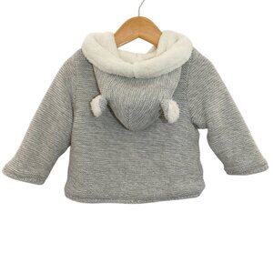 Baby Gap Sherpa Lined Gray Garter Knit Hoodie Jacket 6–12M Cozy Winter Neutral