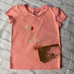 Peach t-shirt with faux purse and charms. Super cute, size toddler 3y. Great condition.