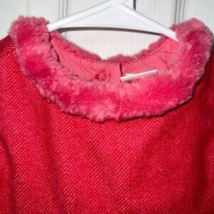 Baby Gap Toddler Girl Herringbone Fur Trim Collar Holiday Dress Wool Size 12-18M