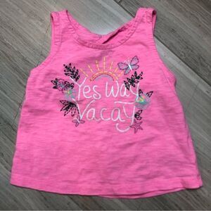 EUC Girls Baby Gap Toddler Yes Way Vacay Tank T-Shirt Sunrise Butterfly Floral Pink 3T