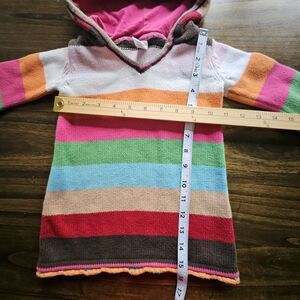 Adorable Baby Gap Y2K two-piece set featuring a colorful striped cotton hoodie dress paired with a soft green blouse. Size 1218 months (see photos for measurements).