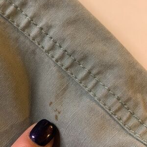 signs of wear include fading from wash, small stain on sleeve, see photos and close up