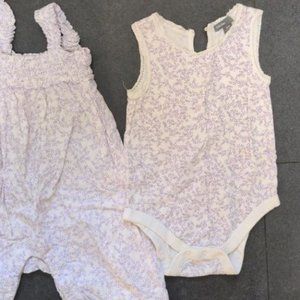 Baby Gap overalls & bodysuit set purple coral design 18-24 M cotton romper