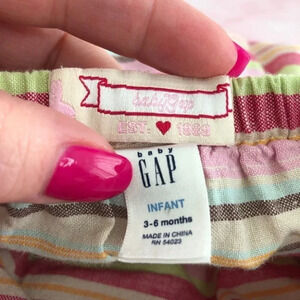 Baby Gap skirt outfit Bee Happy pastel linen stripes size 3-6 months
