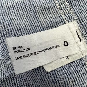 Gently worn, yellow and blue plaid pattern with striped lining. 100 percent cotton and has buttons on the sleeve to wear them either full length or cuffed.