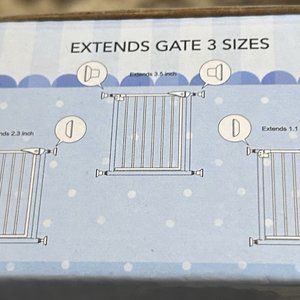 This listing is for a baby gate extender kit. This lit is for pressure mount gates. It extends the gate 1.1 to 3.5 inches. The extender is rubber to protects and prevent sliding for safety. This kit includes four black extenders. This is brand new in the original box.