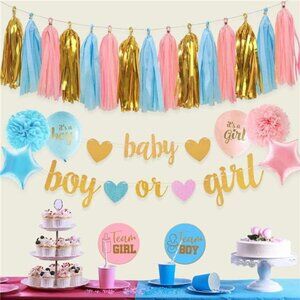 Baby Gender Reveal Decorations - Glitter Letters Baby & Boy or Girl with Banners