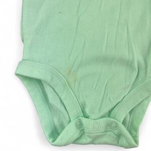 The solid mint green bodysuit has slight discoloration on front near leg hole (see photo)