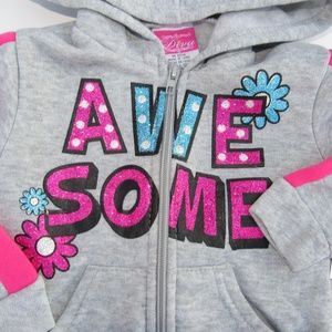 Hoodie Features Kangaroo Style Pockets and AWESOME logo in contrasting pink, blue, and polk dot.
