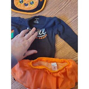 -Orange and white striped pants with orange tutu attached, goes with black bodysuit (Carters 3 months)