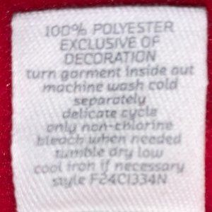 Darling red coat for baby girl. Has decorative black fur buttons with Velcro fasteners on reverse for easy closure. Matching hat completes the set. 100% polyester. Excellent condition.