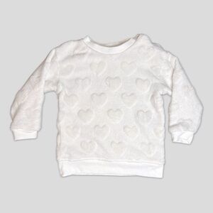 • Ultra-soft white fleece pullover with textured pop-out hearts – cozy and snuggly for cooler days. (9-12 months)