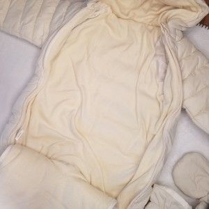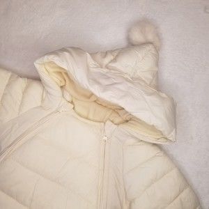 Baby Girl 9M Puffer Snow Suit Warm Bodysuit w/ Mittens Booties Minimalist Cream