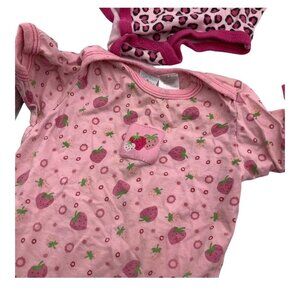 Baby Girl Bodysuit Lot Of 4 Sz 6-12M Strawberry Hearts & Leopard Print Pink White