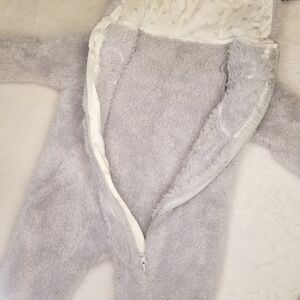 Excellent pre-owned condition baby girl or boy warm long sleeve hooded bodysuit footie, size 6-9M.