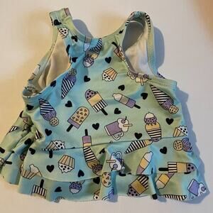 Includes 2 shirts, 1 sweatshirt, 2 bottoms, and 1 swim top with ruffle detail.