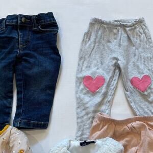 • 3 bottoms. 1 jean 6-12 mos., 1 short 12mos., and 1 pull on pant 12 mos.