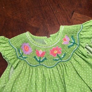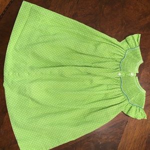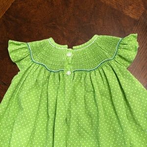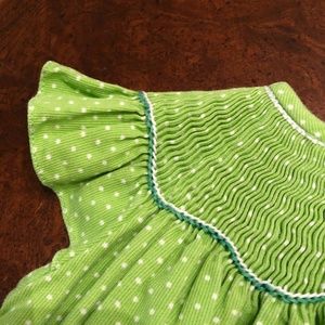 Adorable Classic Whimsey hand smocked angel sleeve green white polka dot dress