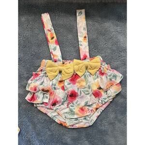 Baby Girl Floral Romper Short Sleeve Bodysuit Ruffled Bottom Size 12-18 Month B7