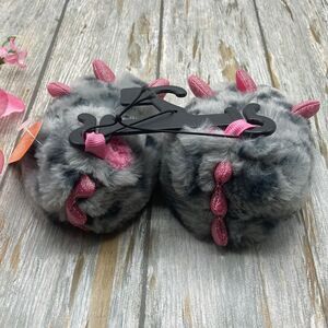 Little ones will love stomping around in their monster claw slippers. Slipper features a fun leopard print with hot pink metallic toes in a boot style that is sure to keep your little cozy and warm. Slipper is easy on and off silhouette with gripper bottom.