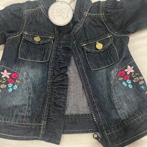 New with tags jean jacket size 6 months with beautiful embroidered flowers