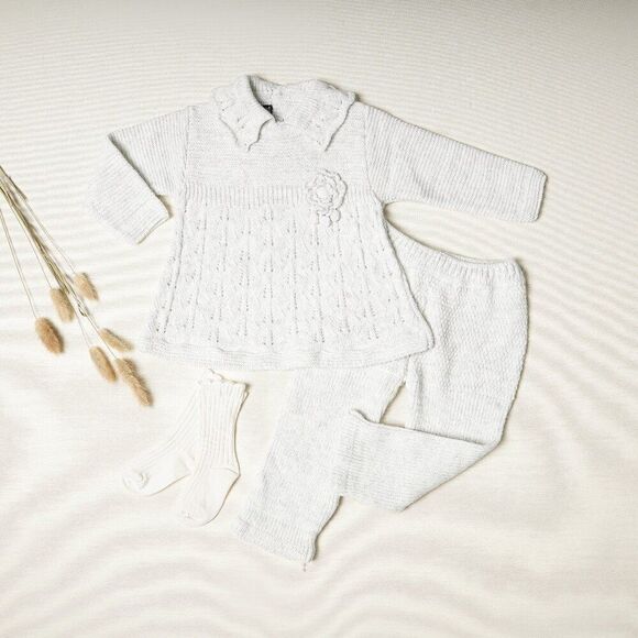 Baby Girl Knit Outfit, Camelia Flower Baby Girl Clothing Set, Organic Ba…