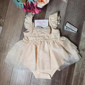 Baby Girl Little Lass Tutu Ballerina Dress Sandollar Beige Size 18M