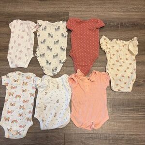 Baby Girl One Piece Assorted Lot Of 7 Size 0-3 Month Bundle