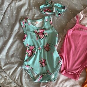 So cute & great for warm weather! Three outfits come with their matching head band.