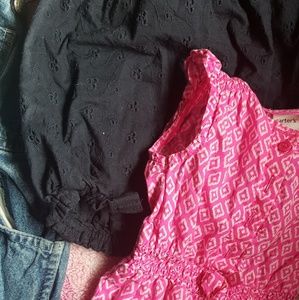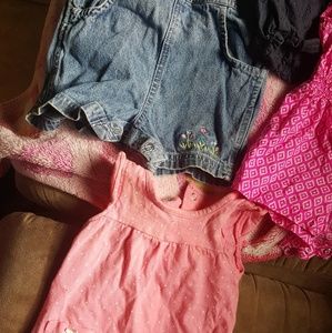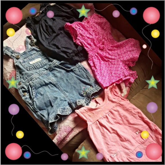 4 Baby Girl Rompers-1 Jean overalls, 3 cute material Rompers. All barely worn all 3 months $6 each or bundle discounts