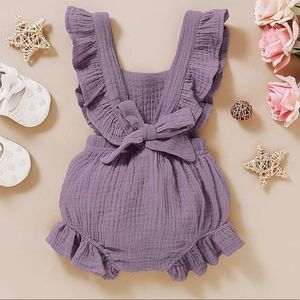 Baby Girl Ruffled Sleeveless Romper backless
