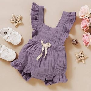 Baby Girl Solid Color Bodysuits Cotton Ruffle Sleeve One-piece Romper Outfits Clothes