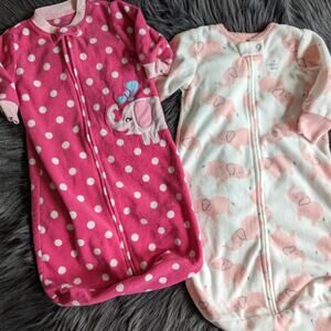fleece carter's pink polkadot (OS) white with elephants 0-9M
