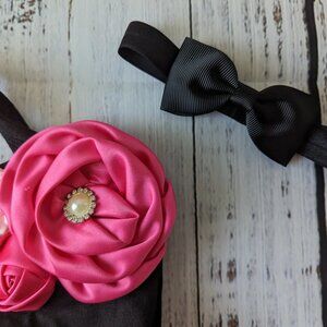 Baby Girl Tank Tutu Dress Black and Pink Size 6-12 and elastic bow headband.