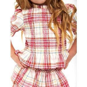 It's a girly thing. Rows of ruffles and a pretty, pretty print add charming details to this Top and Skirt Set. Ready for any special occasion or just a day in the classroom, this smocked top and matching skirt will have her twirling with joy. The skirt features attached shorts for a comfortable and secure fit. Fun to wear together or mix and match each piece with her other faves to maximize her wardrobe.
