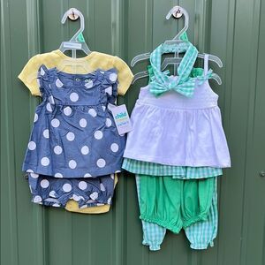 Baby Girl Summer Outfit’s Romper Onesie Shirt Bloomers 8-Piece Size 6-9M