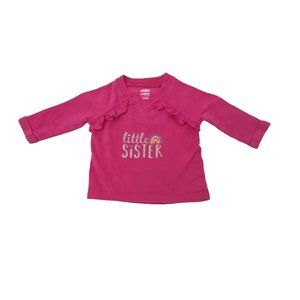 • Baby Girl's Bright Pink Sweatshirt with "little SISTER" and a Rainbow