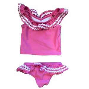 This listing is for a Baby Girl's 12 Month tankini Swimsuit 2 Piece Pink Ruffles Wonder Nation.