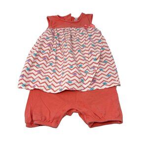 • Peach Dress with Attached Shorts - Top is Peach, Skirt is White & Peach Zig Zag Stripes with Lavender & Turquoise Butterflies, Attached Shorts are Peach with Elastic at Legs