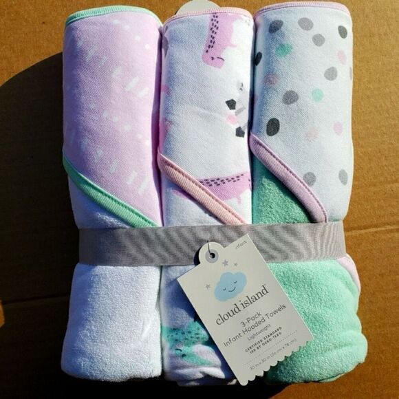 Baby Girls 3pk Dino Hooded Bath Towel Set New