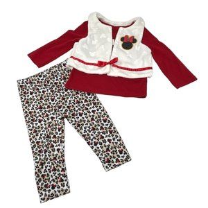 Baby Girl's Adorable Minnie Mouse Leggings & Vest & Red Shirt - Size 12 Month