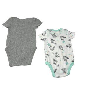 • White Short Sleeve Body Suit with Green Trim & Accents and Grey Racoons
