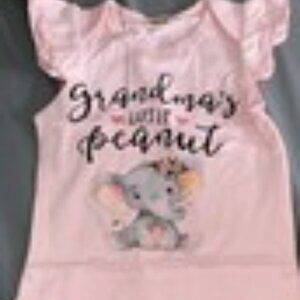 Baby Girls Cute "Grandma's Little Peanut" Elephant Graphic bodysuit Pink