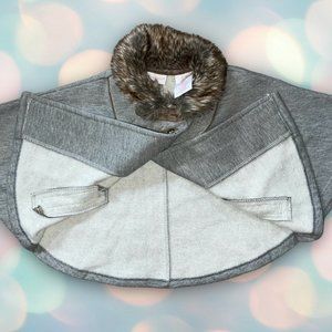 Baby Girl’s Gray Brown Faux Fur Winter Poncho Cape Jacket Size 12 Months